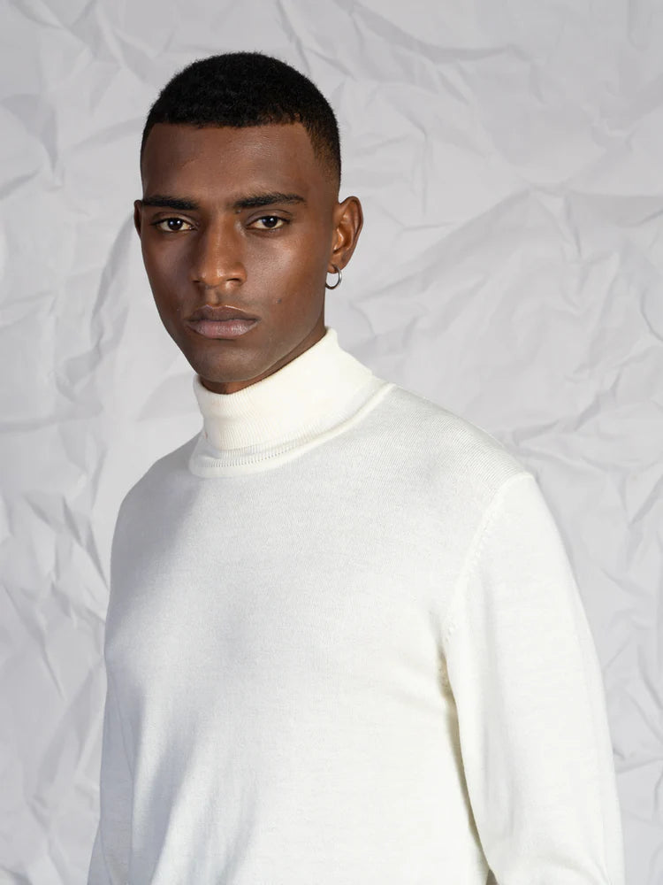 Maglia a collo alto dal design essenziale e raffinato, realizzata in tessuto misto morbido e confortevole. La lavorazione liscia e i bordi a coste valorizzano il taglio slim fit, offrendo una vestibilità aderente ma comoda.