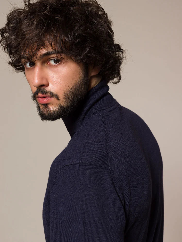 Maglia a collo alto dal design essenziale e raffinato, realizzata in tessuto misto morbido e confortevole. La lavorazione liscia e i bordi a coste valorizzano il taglio slim fit, offrendo una vestibilità aderente ma comoda.