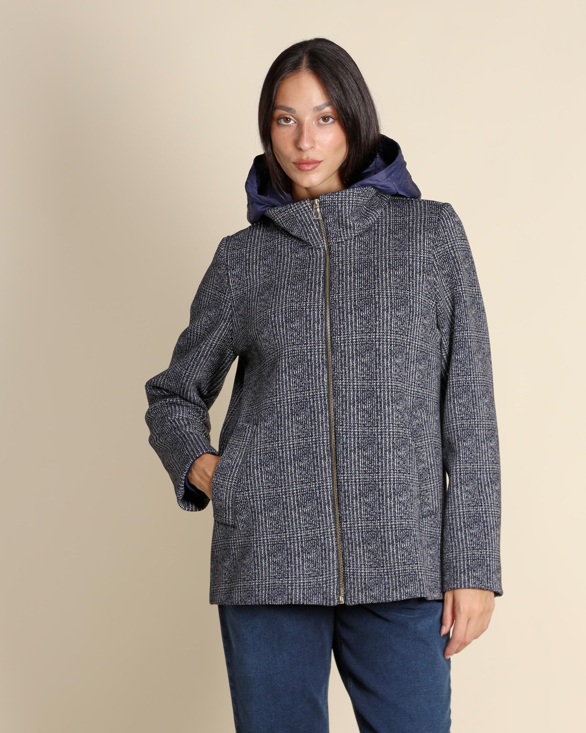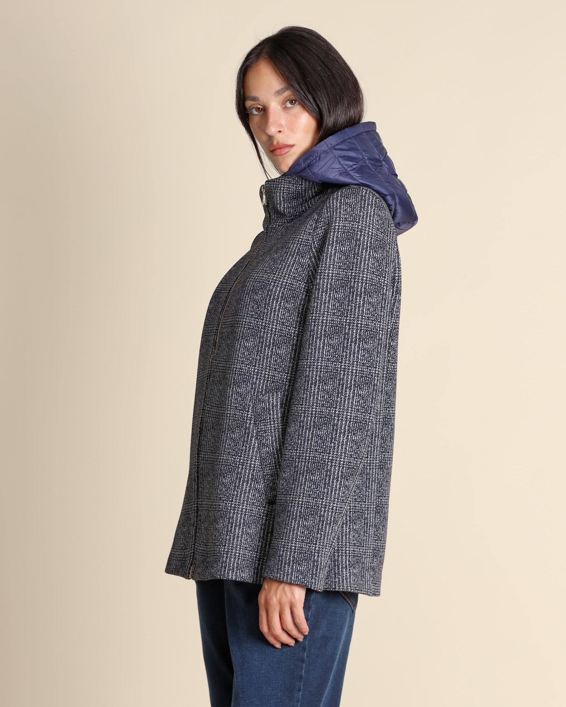- Cappuccio in tessuto tecnico downproof e antigoccia