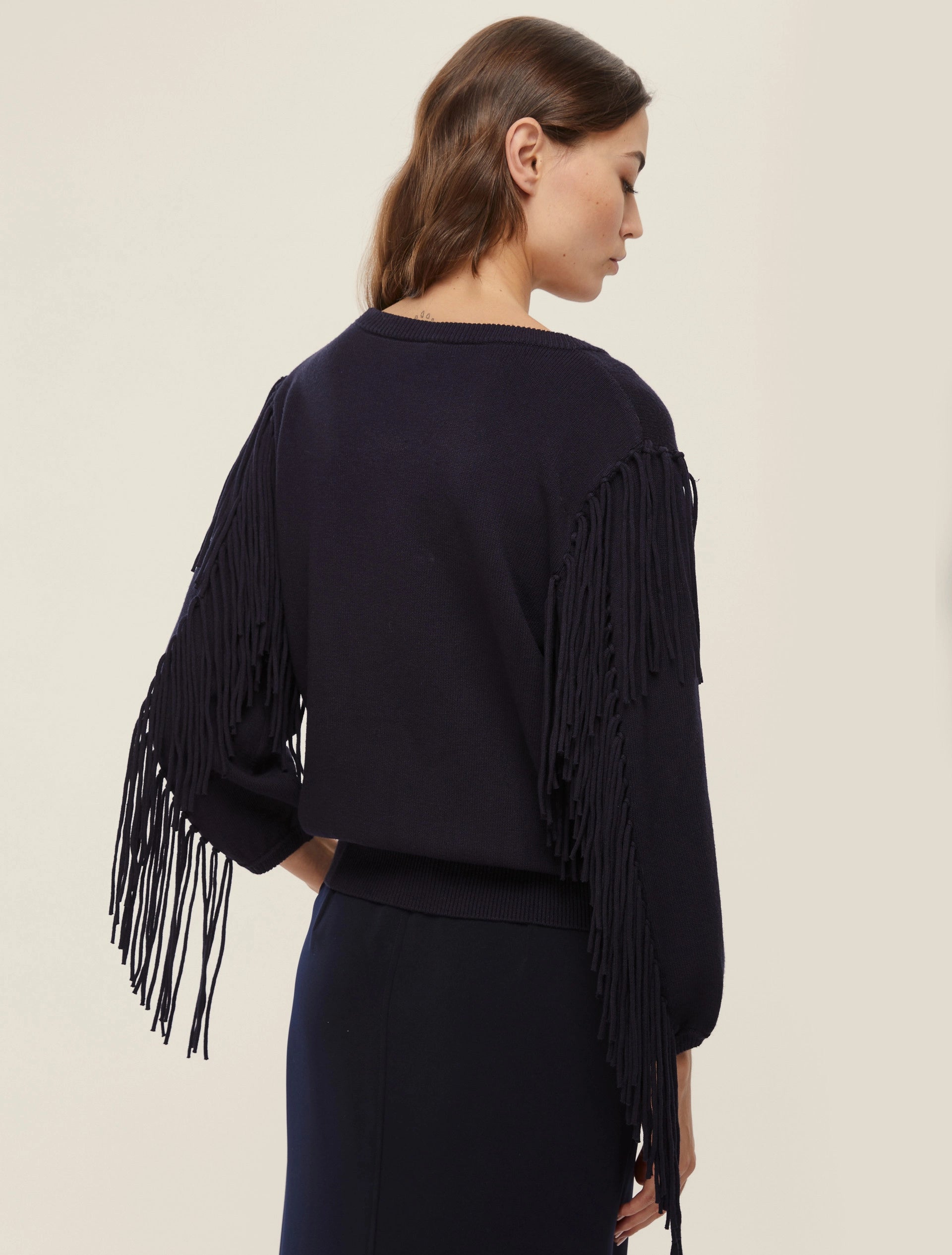 Se le frange sono il trend di stagione, questa è la maglia più cool. Ampia, con spalle scese e scollo a barchetta, si indossa con i denim o con una longuette per definire i look urbani che amerai di più.