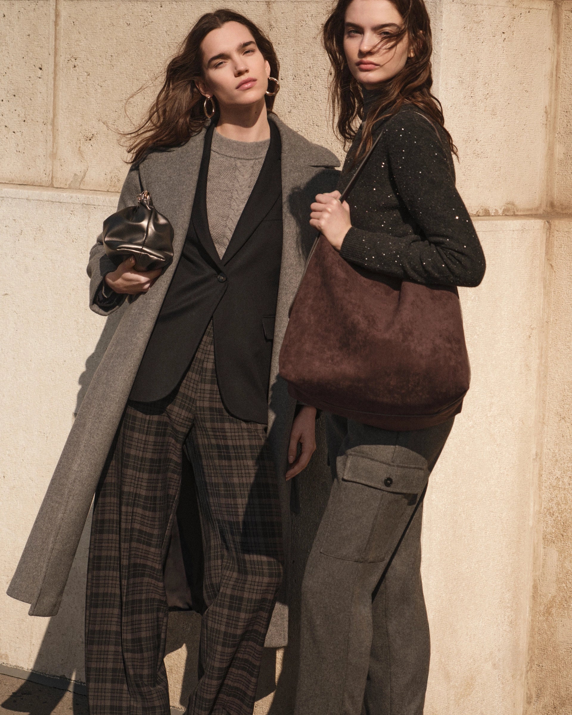 Trasformazione cool del pantalone in flanella leggera, da completare con abbinamenti inediti e femminili. I tasconi laterali aggiungono una nota grintosa e funzionale, che dona carattere ad ogni look.