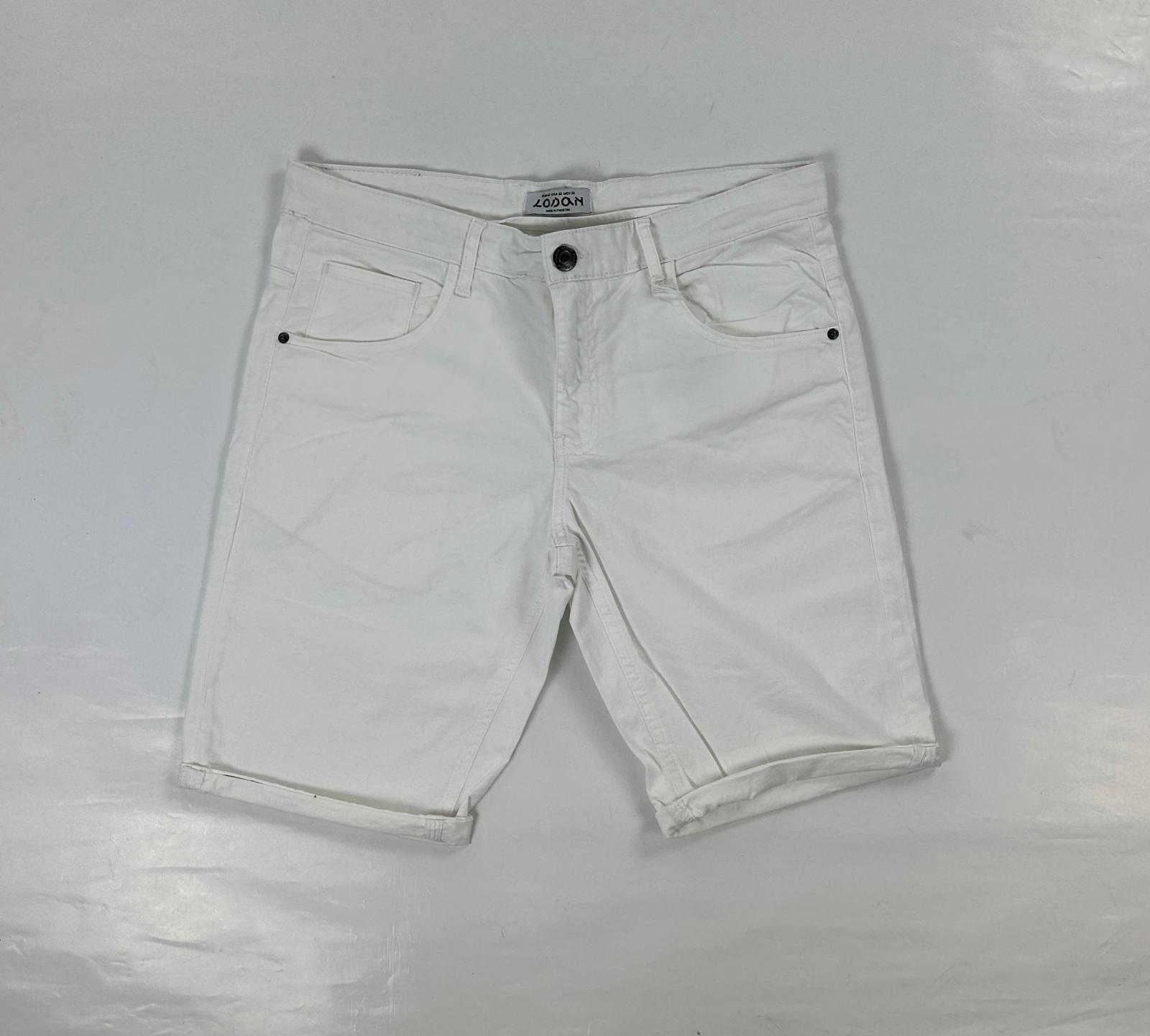 Bermuda in cotone 5 tasche della LOSAN nel colore bianco ottico, chiusura frontale con zip e bottone, passanti in vita, risvoltino sul fondo, vestibilità slim.