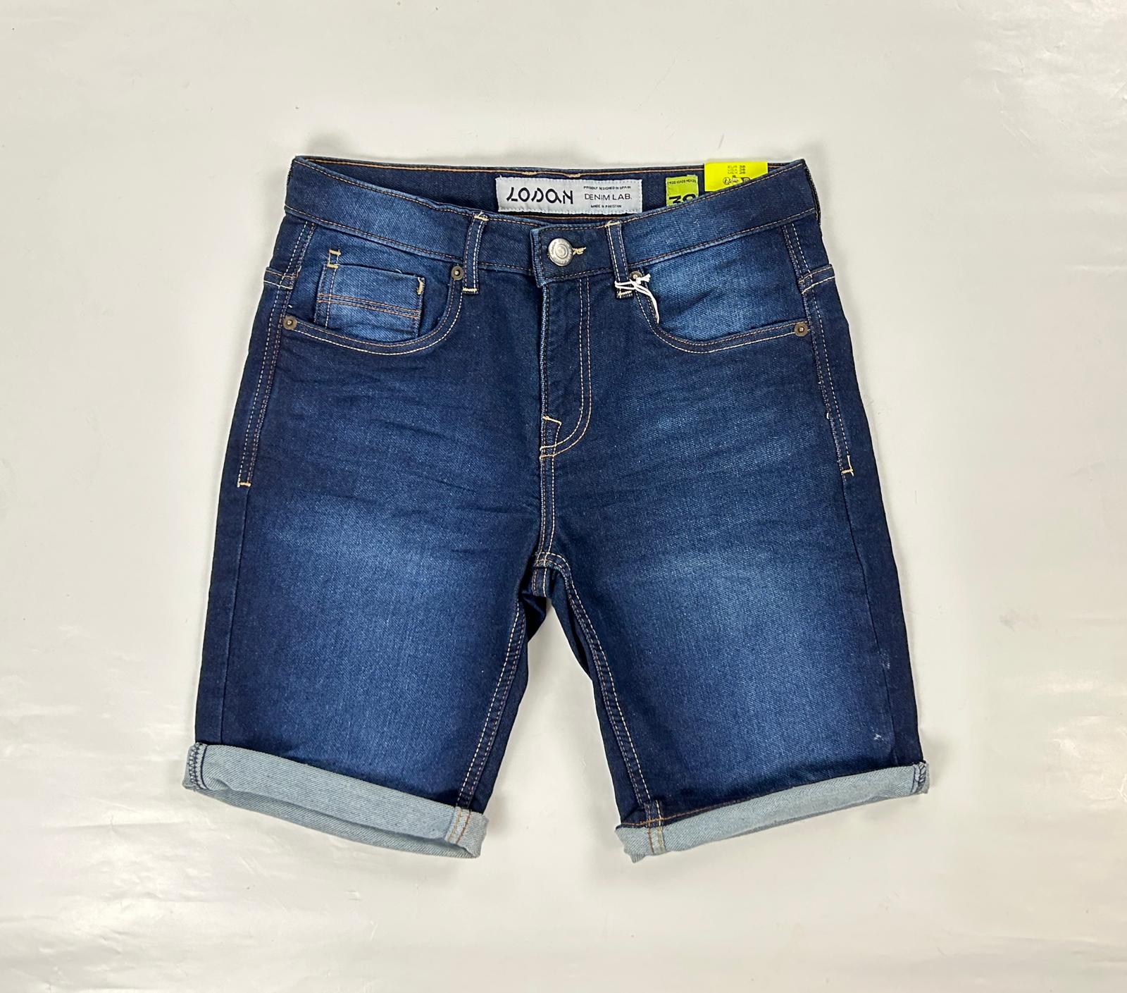 Bermuda 5 tasche di jeans della LOSAN nel colore denim scuro sbiadito, chiusura frontale con zip e bottone passanti in vita, risvoltino sul fondo, vestibilità slim.