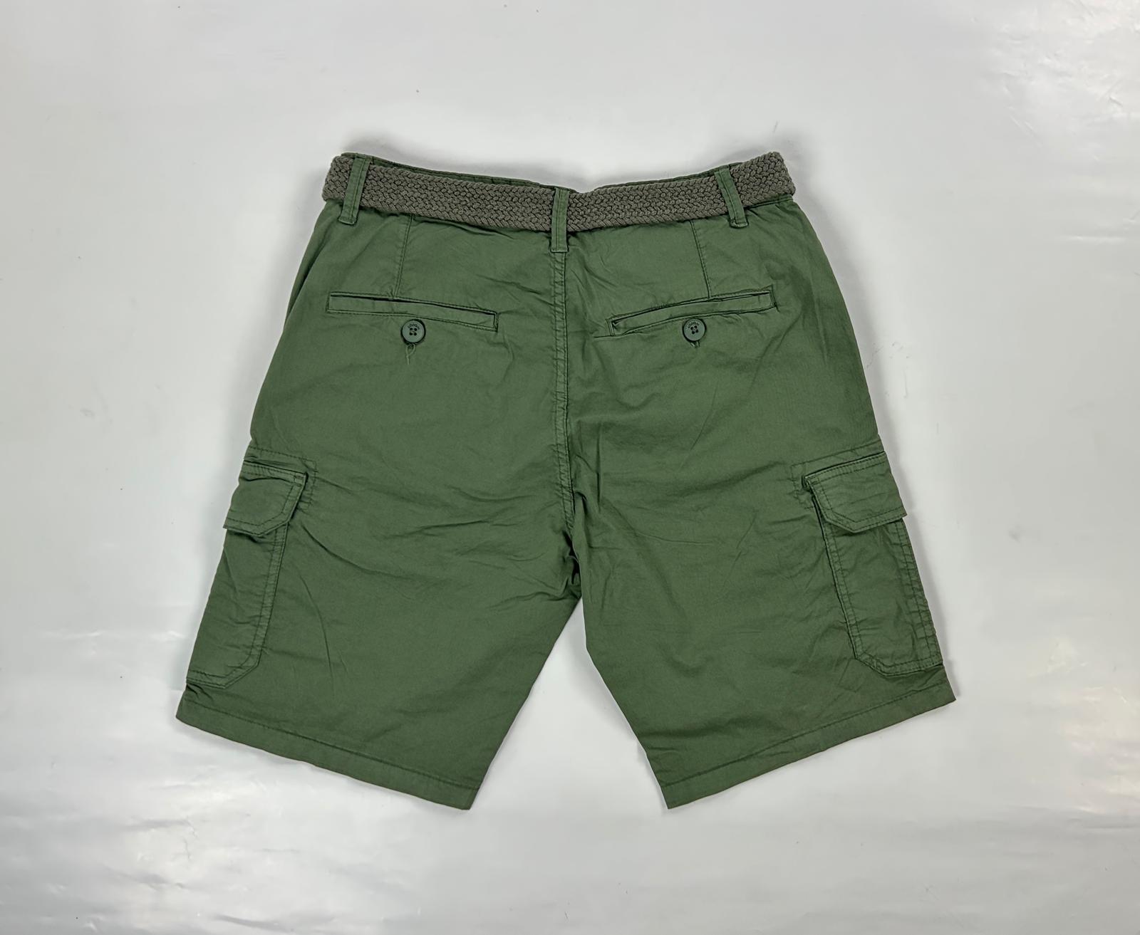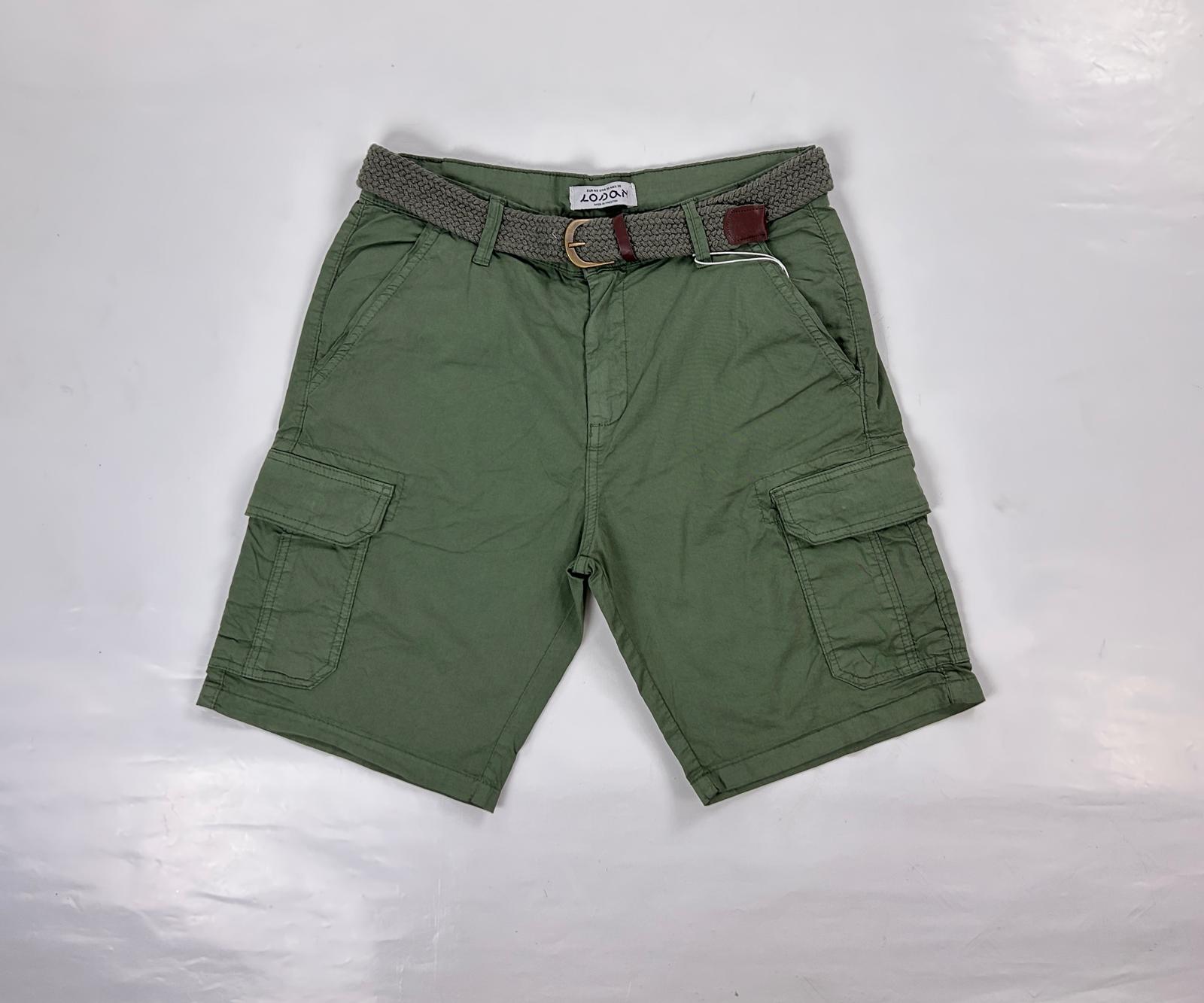 Bermuda in cotone della LOSAN nel colore verde militare,tasche america e tasconi ai lati, chiusura frontale con zip e bottone, passanti in vita, cintura in dotazione, vestibilità slim.