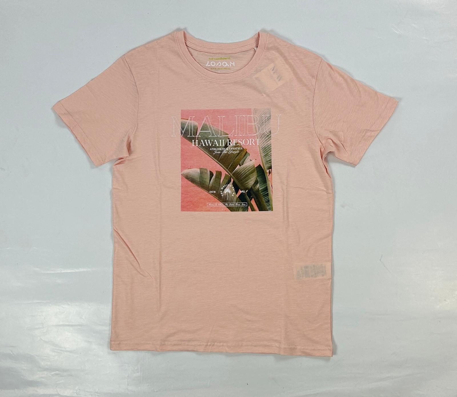 T-shirt girocollo con stampa sul petto in cotone della LOSAN nel colore salmone.