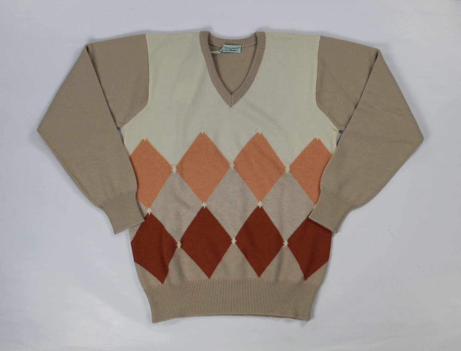 Maglia collo a V con stampa a rombi in puro cashmere 4 fili, vestibilità regular.