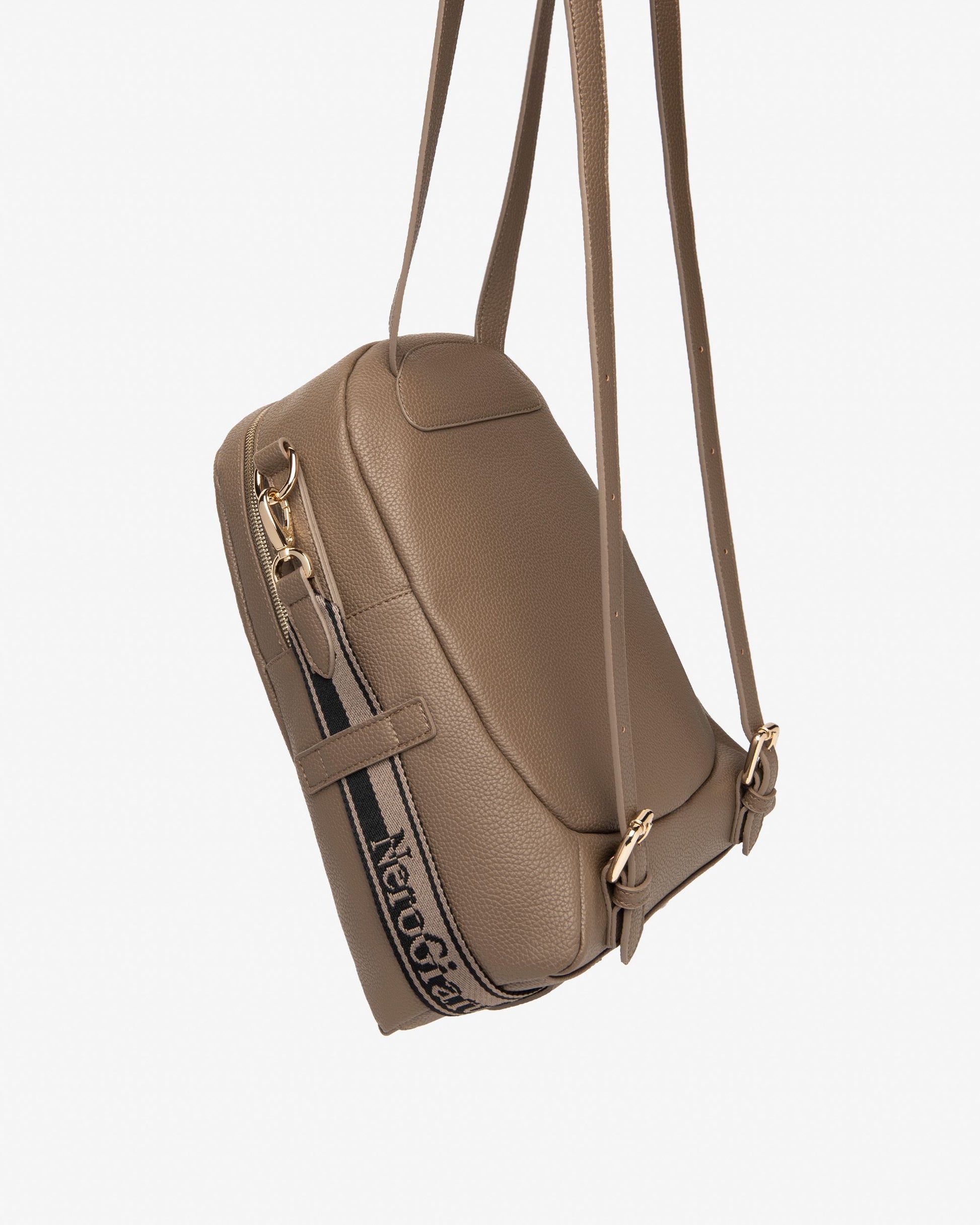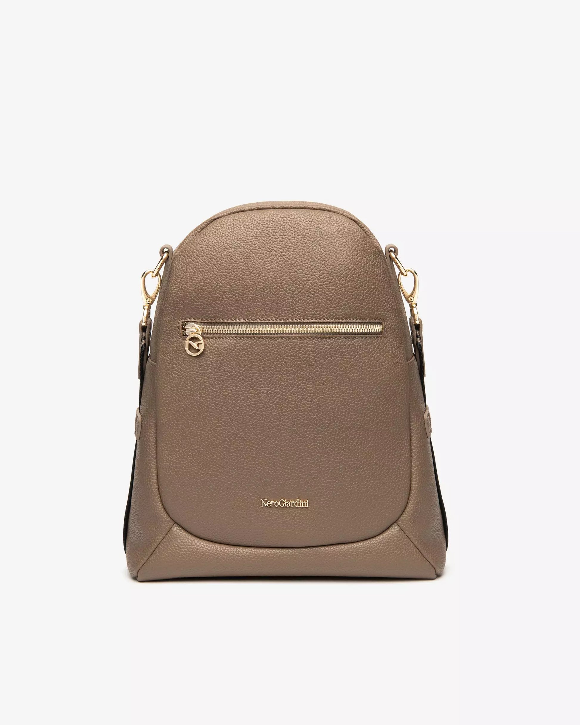 Zainetto da donna della NERO GIARDINI nel colore beige. Zainetto realizzato con materiali tecnici, una tasca parte anteriore con chiusura a zip, tascone centrale per aprire lo zaino con chiusura a zip, due tasche interne con chiusura a zip, tracolla "nero giardini" per portare lo zaino a mò di borsa, dotato anche di fodera. Cinturini per regolare la lunghezza dello zaino. Logo "NERO GIARDINI" sulla parte anteriore.