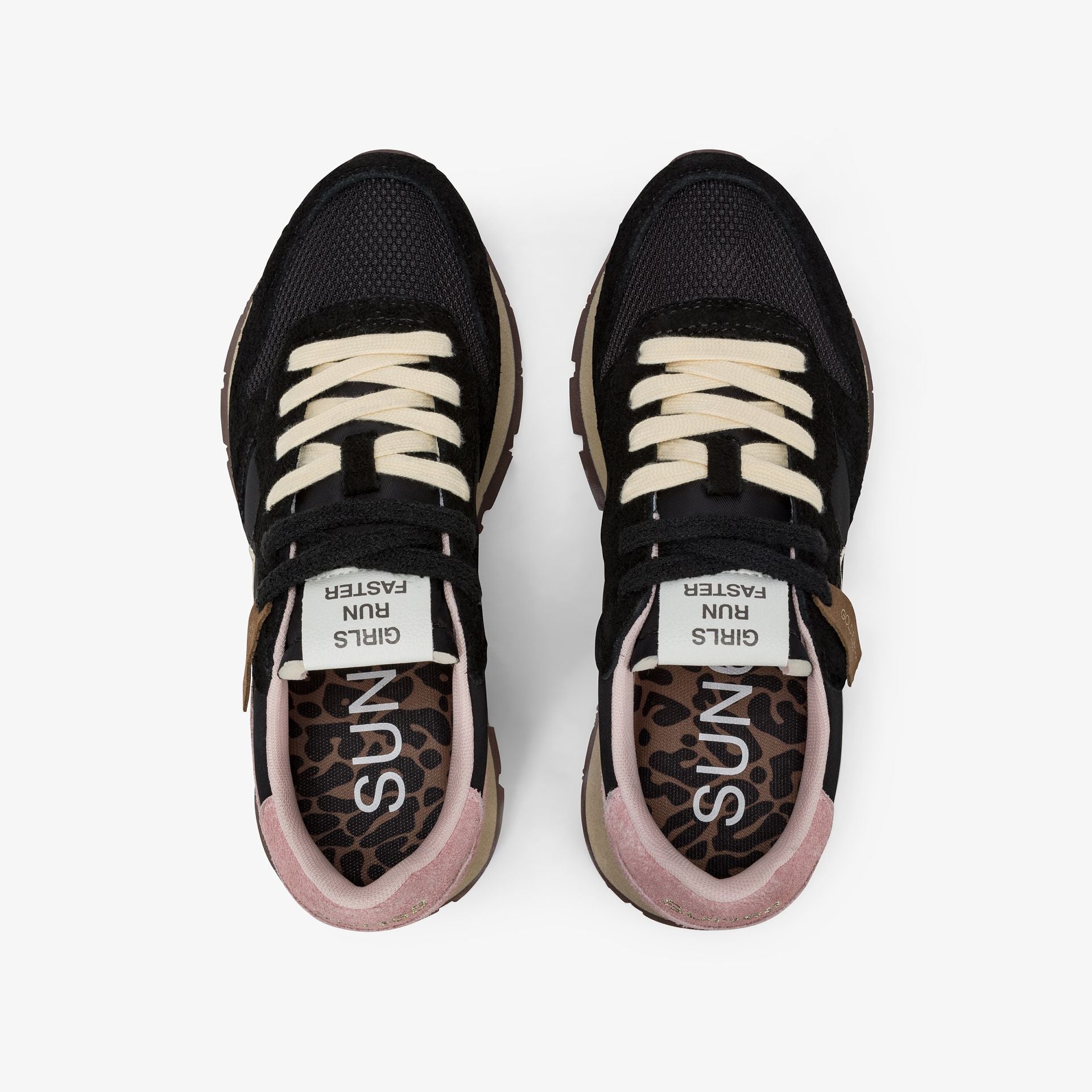 Design classico dall'estetica autentica. La sneaker Ally Vintage si ispira all'icona SUN68 e la reinterpreta con un ricercato effetto used, lo spoiler in suede animalier e il lettering "Run faster" che decora la suola.