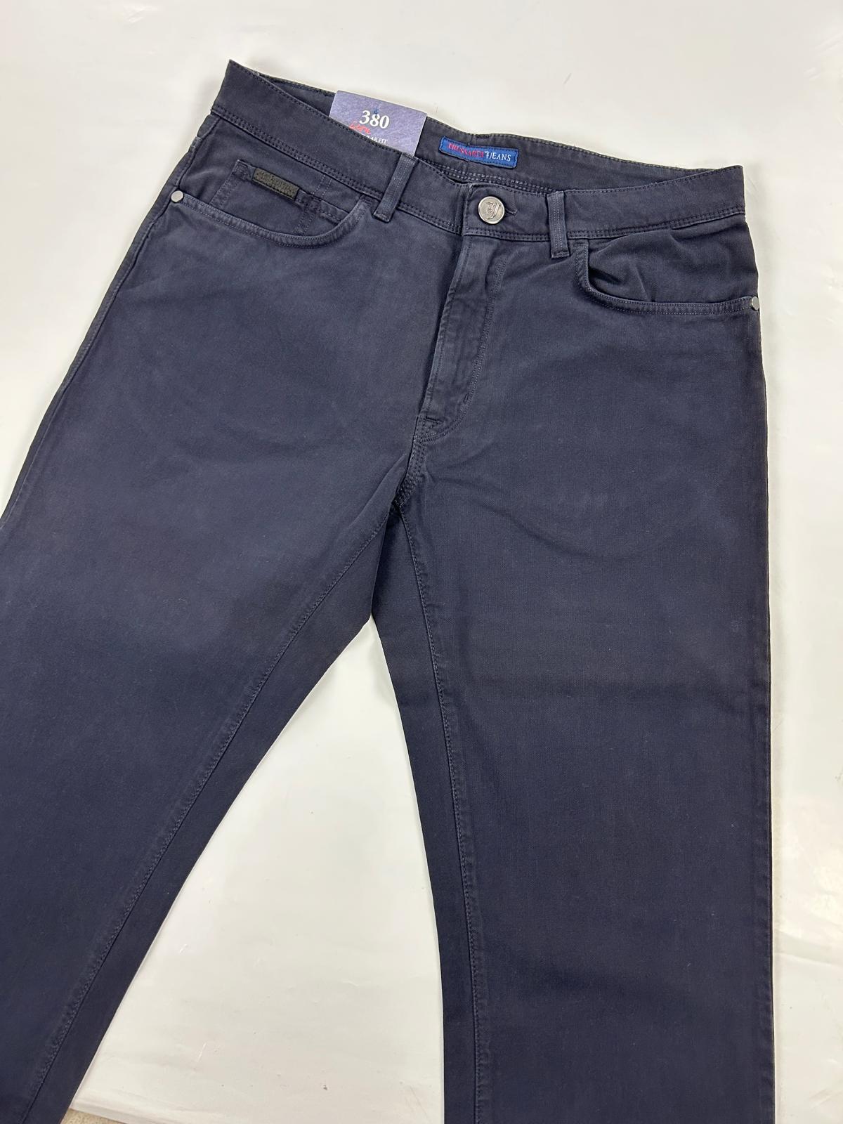 Pantalone in cotone da uomo della TRUSSARDI nel colore blu notte. Pantalone in cotone, 5 tasche, chiusura frontale con zip e bottone passanti in vita. Vestibilità regular fit.